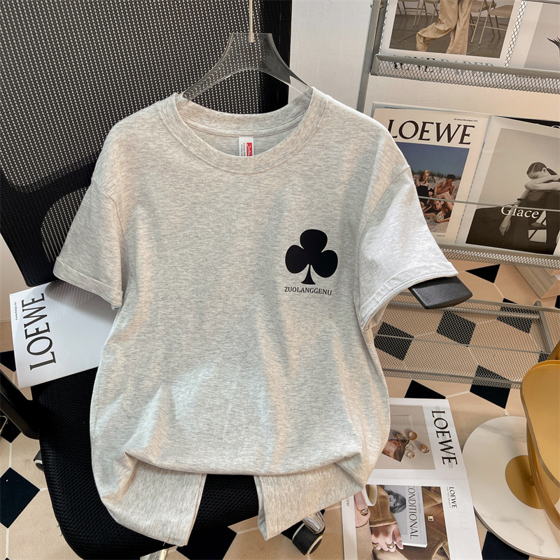 中长款黑桃印花纯棉短袖t恤女美式设计感oversize宽松半袖上衣夏