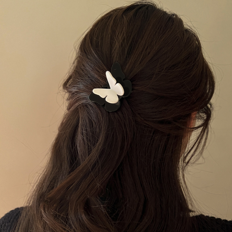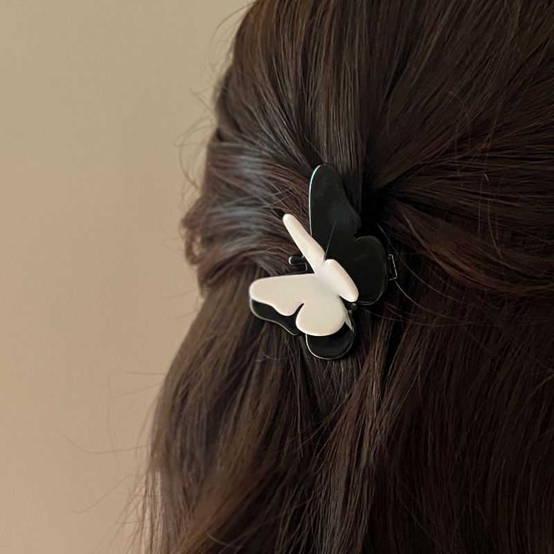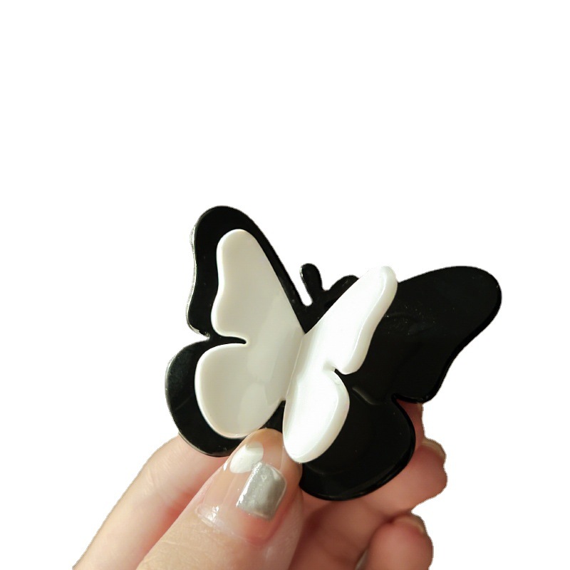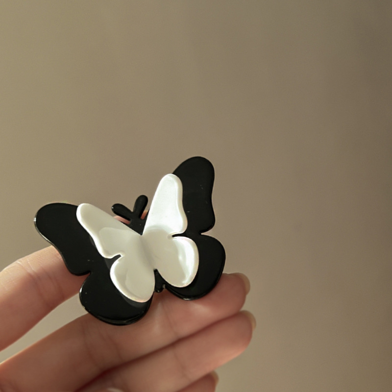 法式沦陷复古亚克力立体黑白撞色蝴蝶发夹高级感小众ins刘海边夹