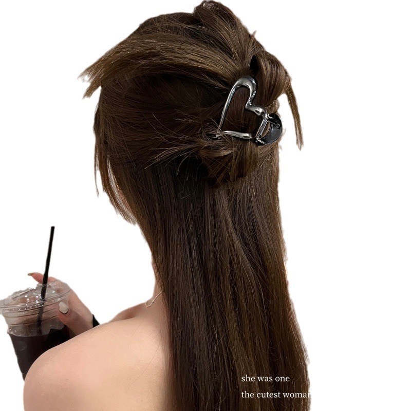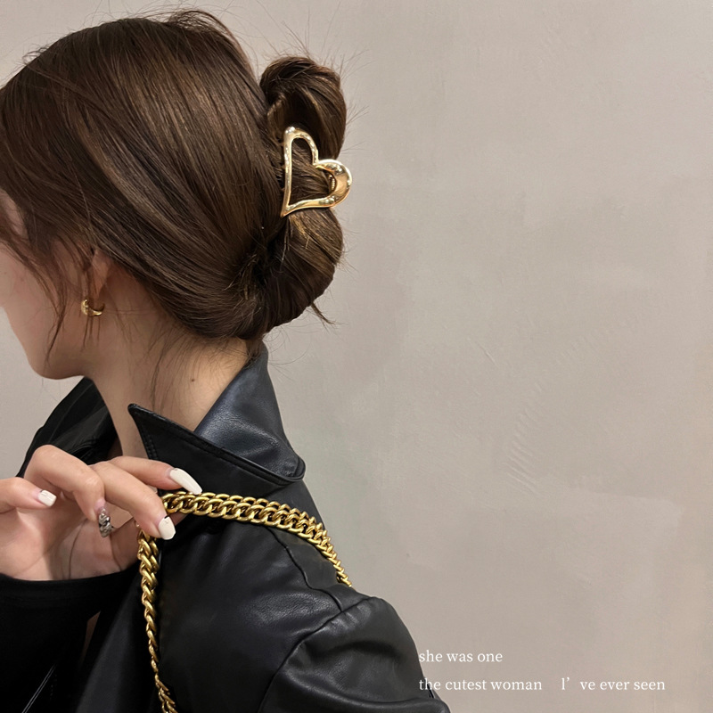 镂空金属爱心抓夹ins网红盘发鲨鱼夹高级感新款发夹女后脑勺