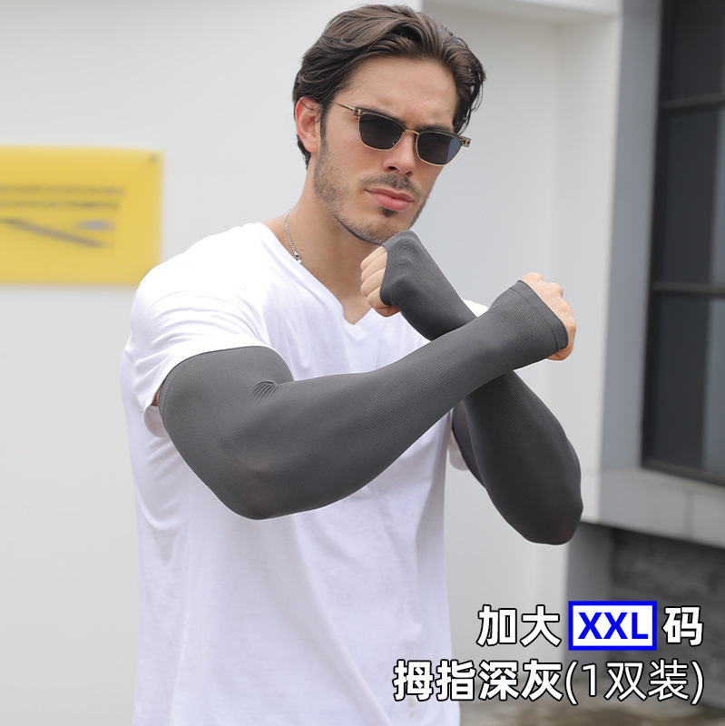 热卖夏季防晒冰袖冰丝袖套男士加大码护臂加肥手套防紫外线