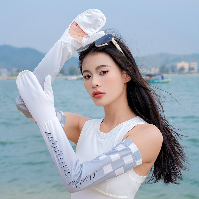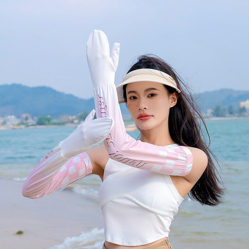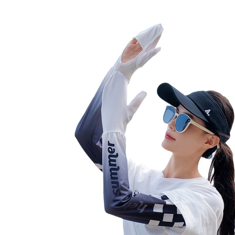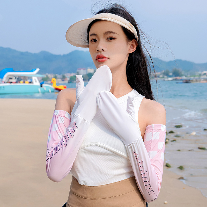 方格冰袖防晒袖套女夏季薄款防紫外线冰丝手袖护臂手臂套袖开车