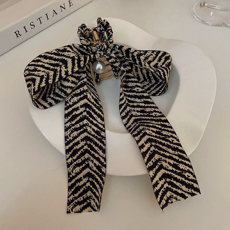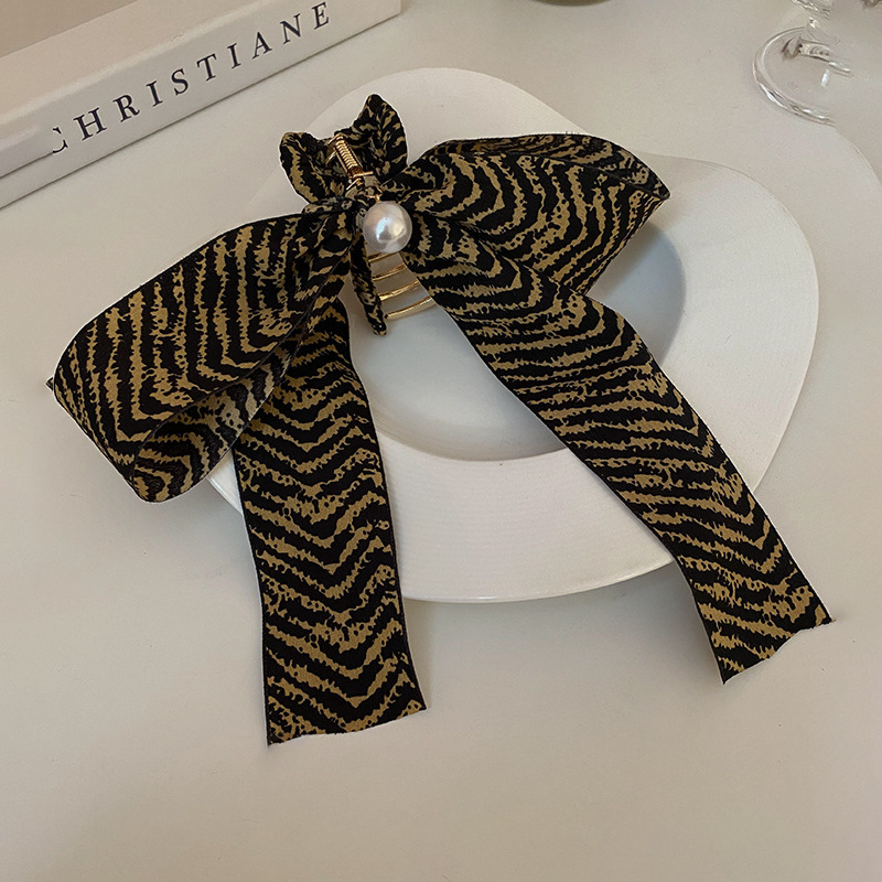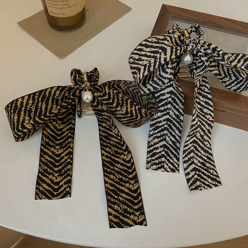 高级感条纹蝴蝶结头饰发夹后脑勺抓夹女夏季ins设计大号鲨鱼夹子