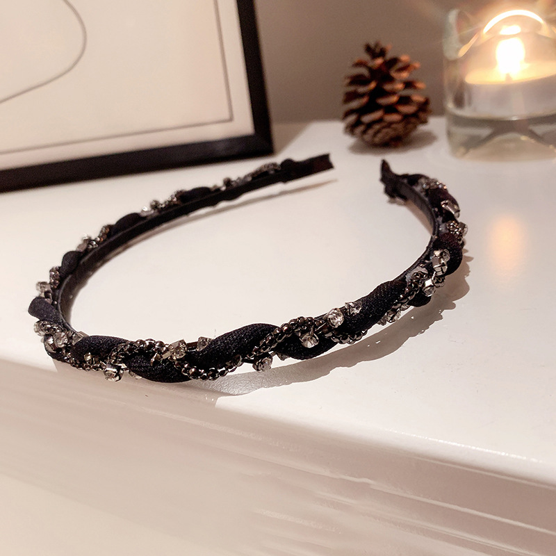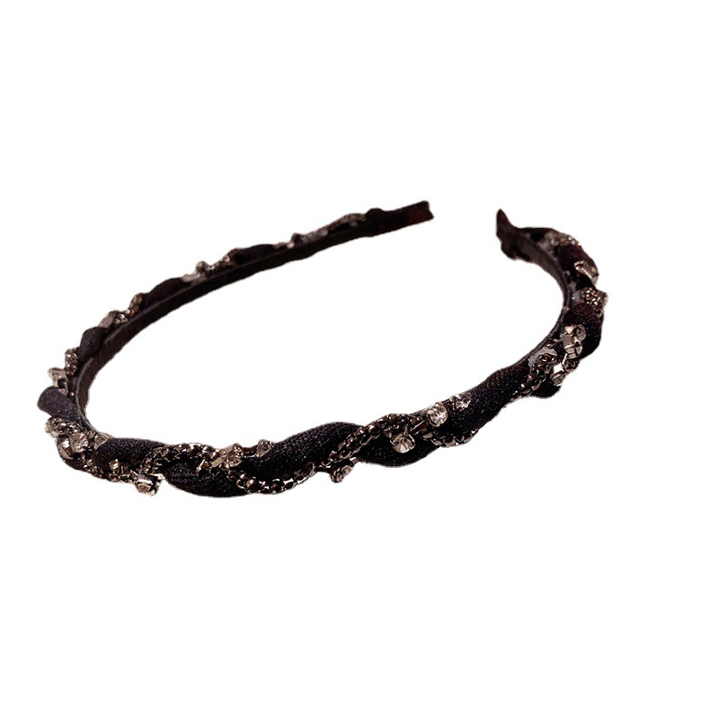 韩国东大门镶钻缠绕发箍时尚枪黑色头饰简约日常百搭发饰新款