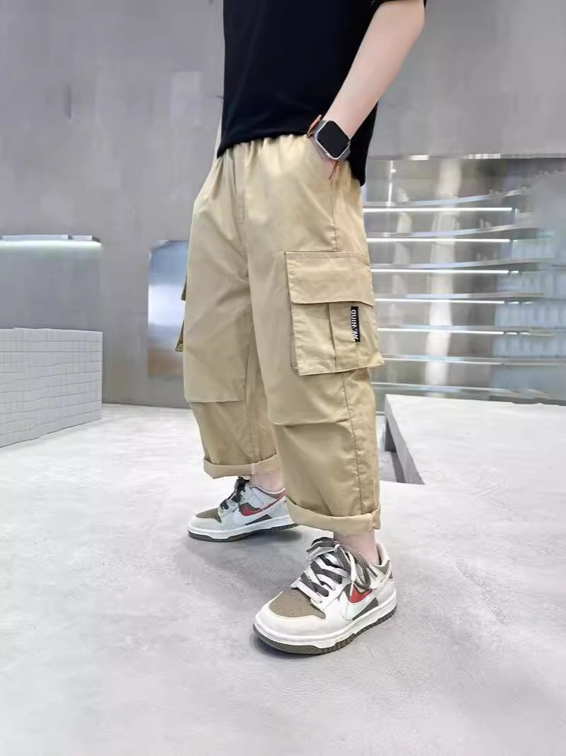 青少年休闲裤子男童韩版宽松直筒美式潮牌多口袋工装裤儿童装外贸