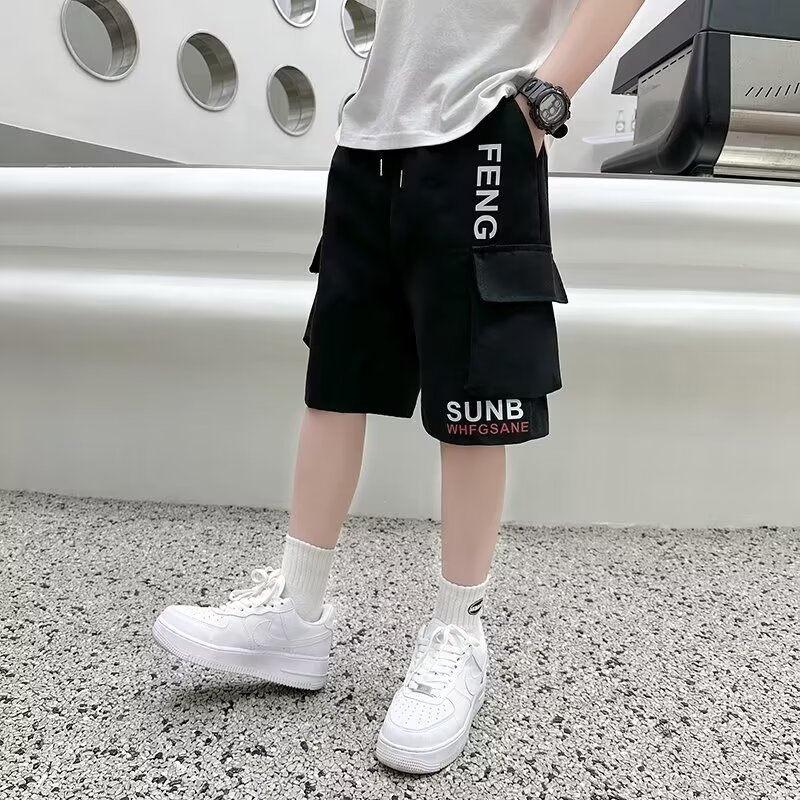童装日系港风夏季潮牌短裤男童运动ins工装裤中大童直筒五分中裤