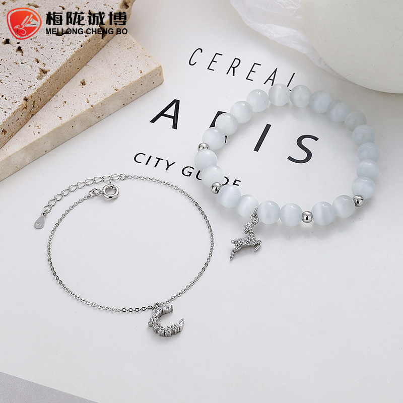 925纯银月影鹿踪手链女新款麋鹿月亮猫眼石手链个性设计感ins饰品