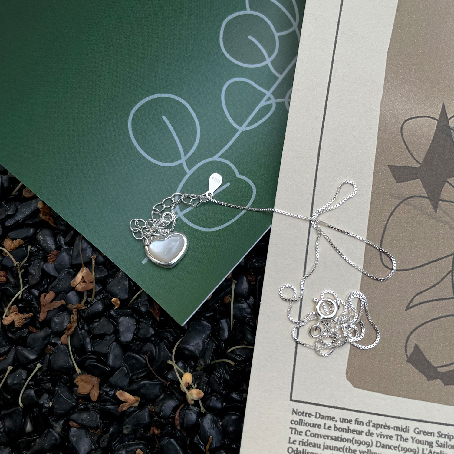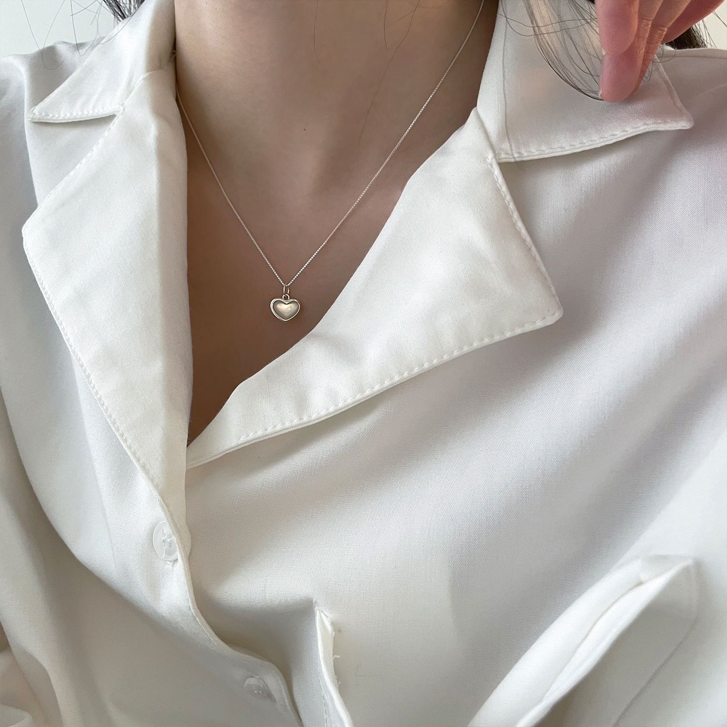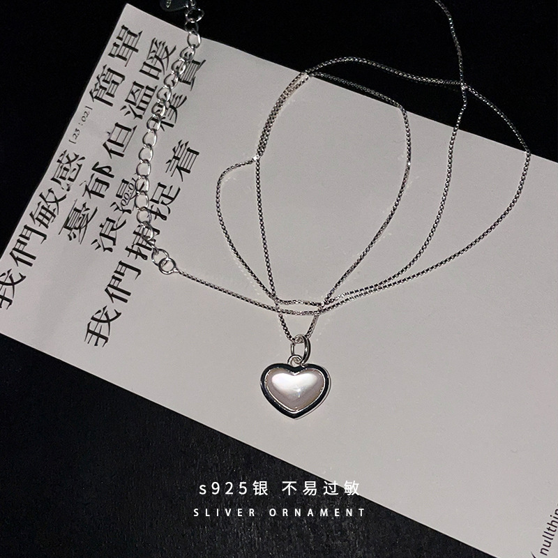 925纯银爱心贝壳吊坠简约气质ins项链女小众设计感可调节锁骨链子