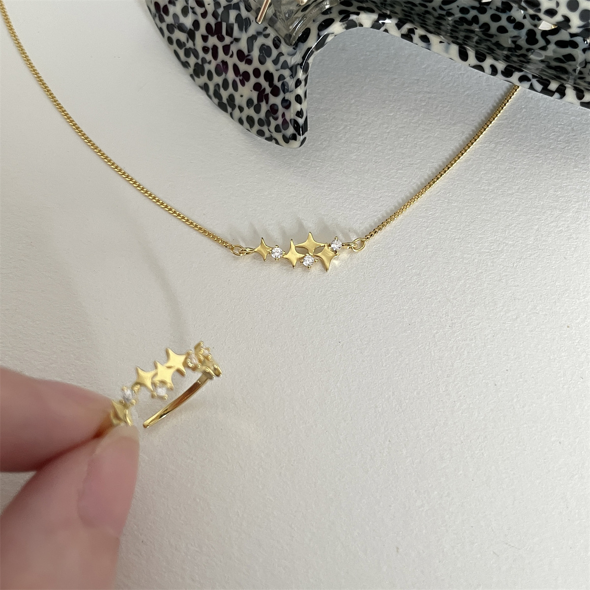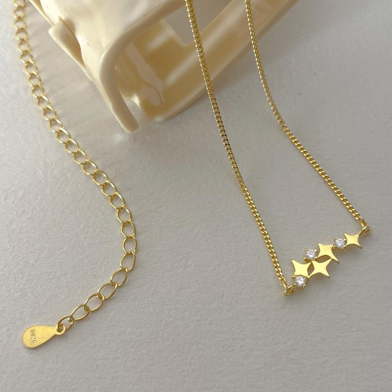 韩版ins简约十字星锆石项链女小众设计感925纯银百搭时尚锁骨链子