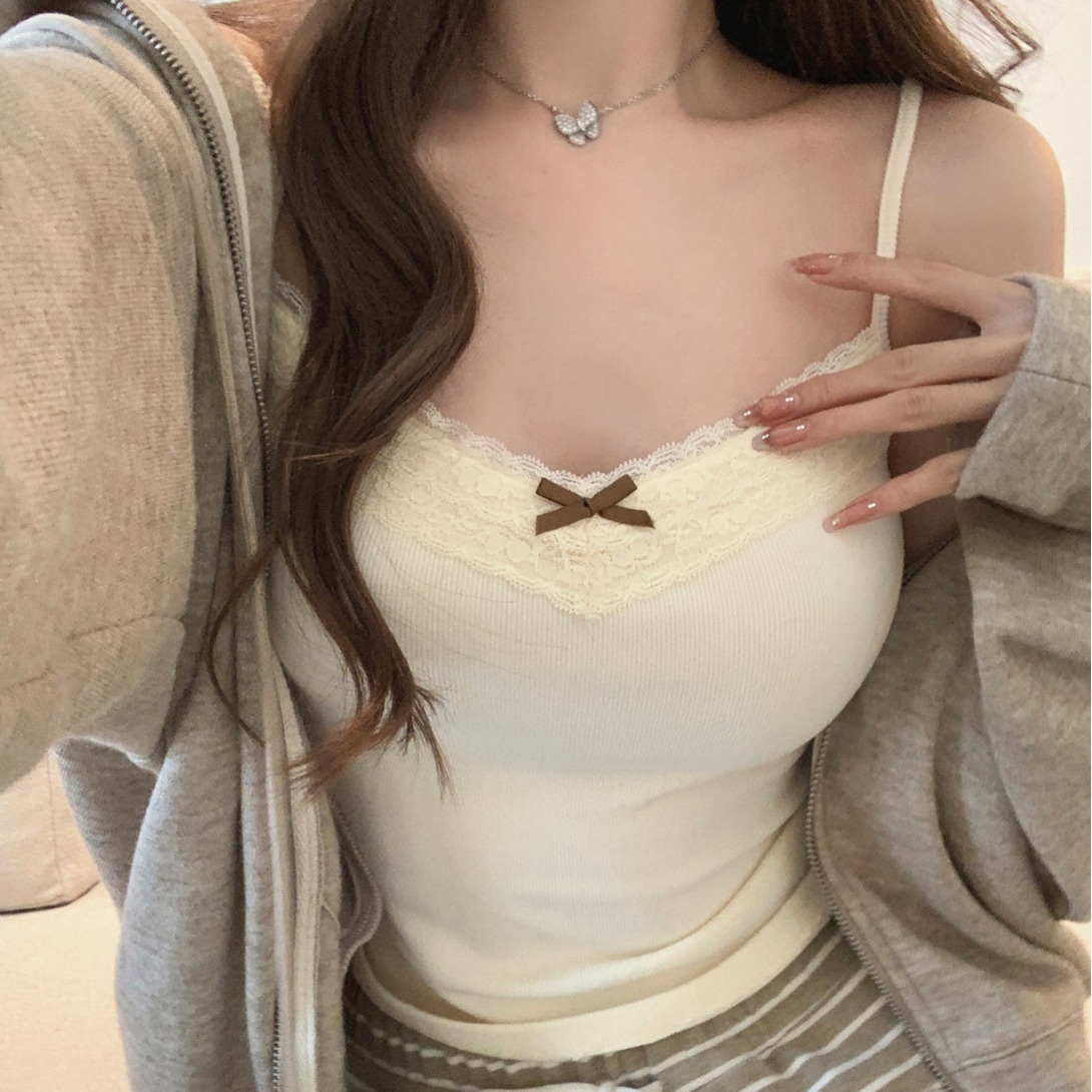 蝴蝶结蕾丝花边带胸垫吊带背心女内搭修身显瘦灰色甜辣妹打底上衣