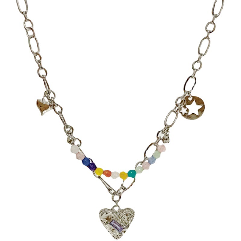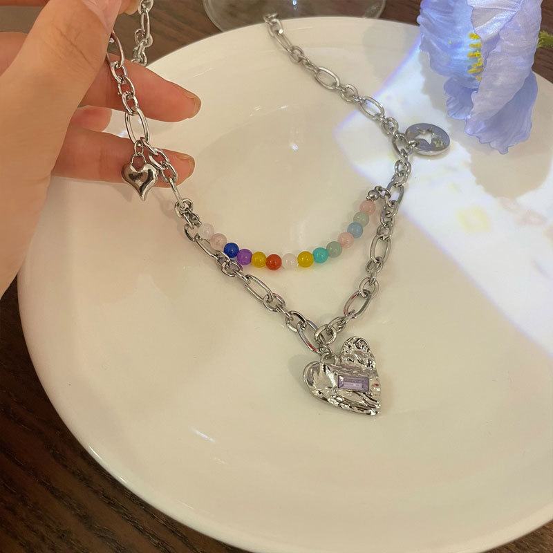 超爱!ins博主偏爱 彩珠爱心项链女高级设计感小众锁骨链甜酷配饰