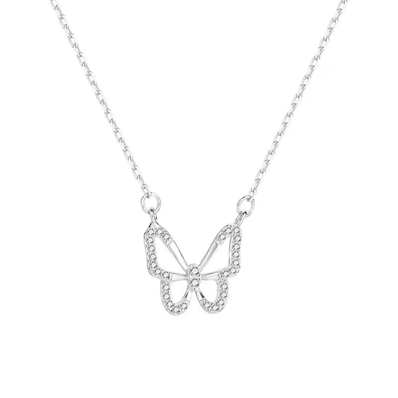 韩国新款饰品简约风镂空镶钻蝴蝶吊坠s925纯银项链女百搭首饰