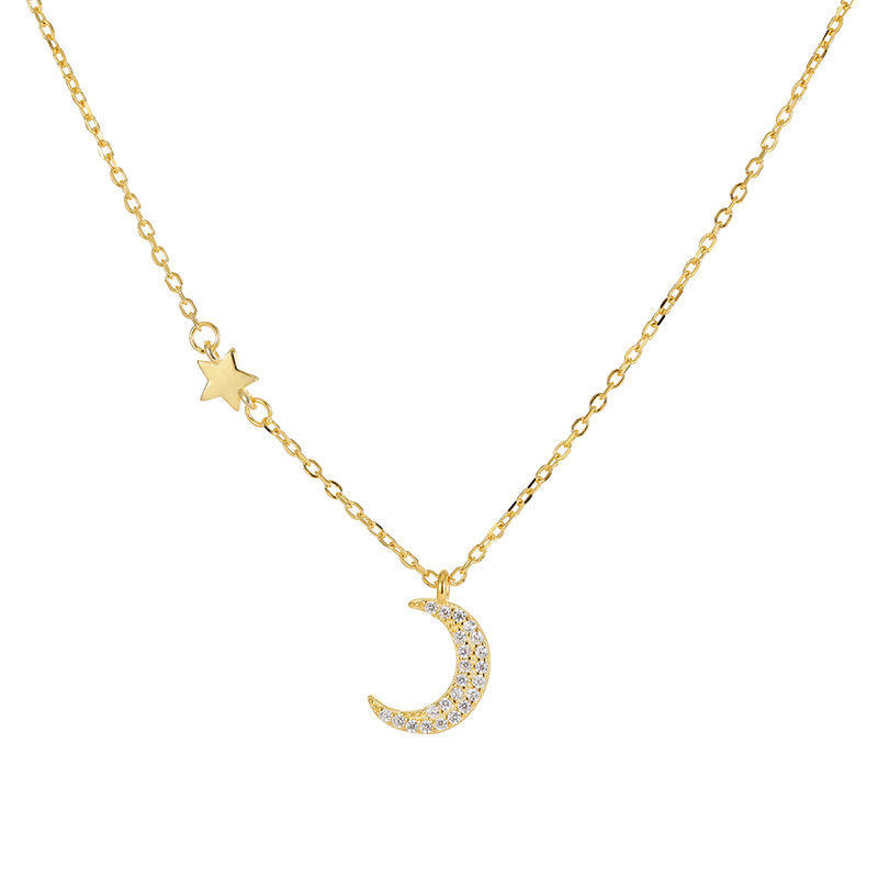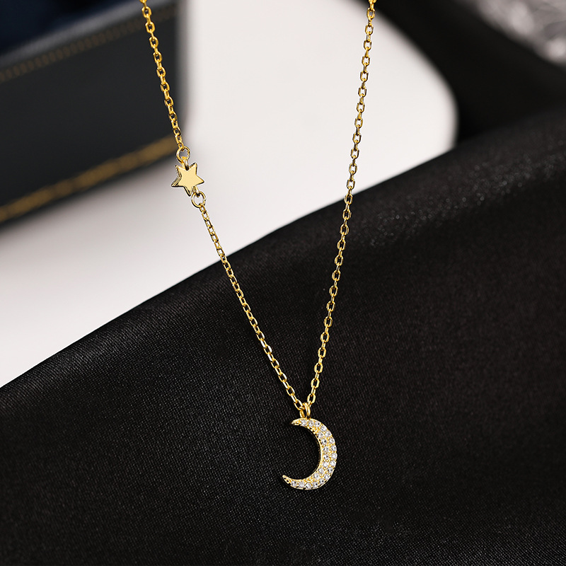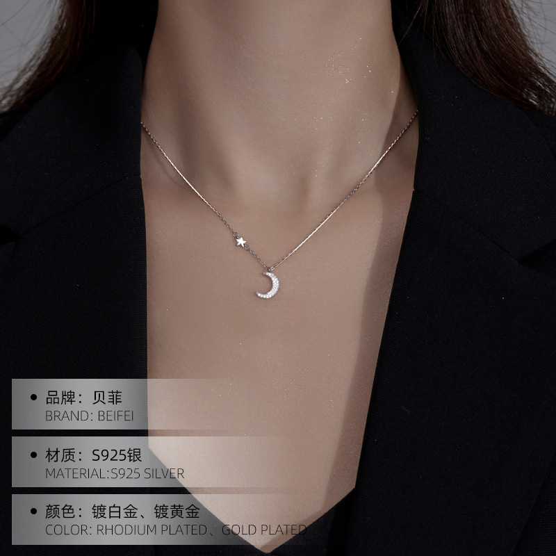 S925银星月项链轻奢百搭气质镶钻月亮吊坠锁骨链小众高级感饰品女
