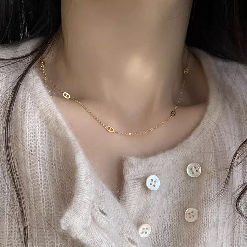 s925纯银猪鼻子项链女ins小众高级感百搭可叠戴锁骨链