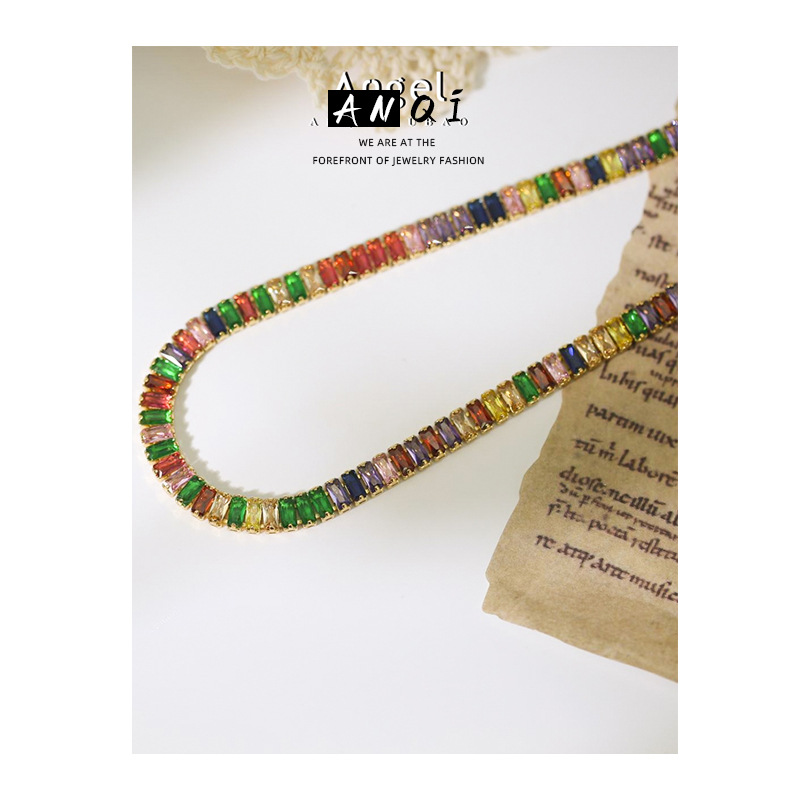高级感七彩方形时尚小众设计复古闪钻锆石项链气质个性项链女
