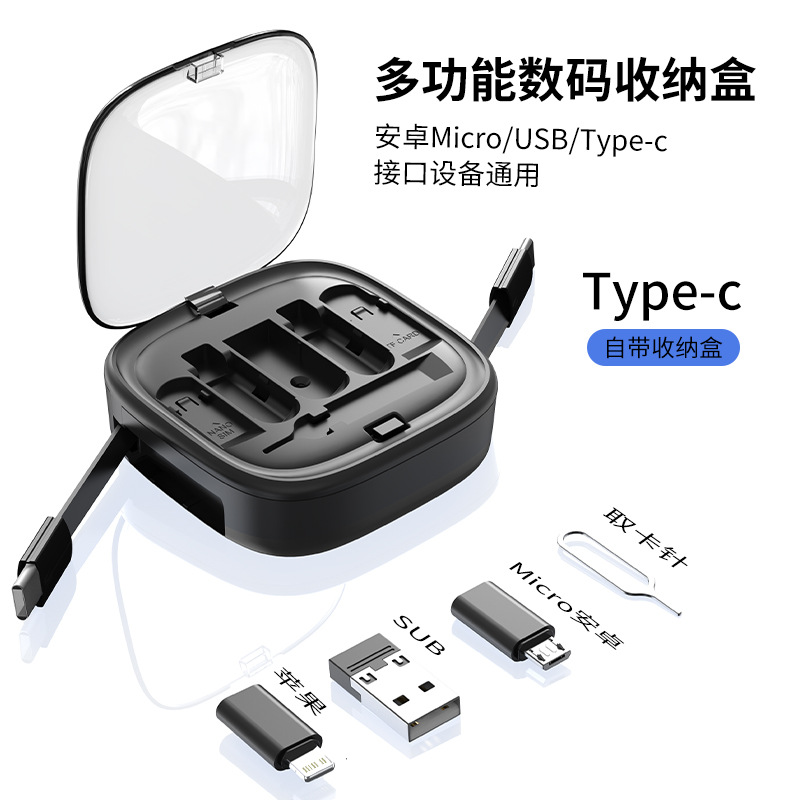 60W快充伸缩数据线tpyec配备安卓Micro转接头多功能充电线收纳