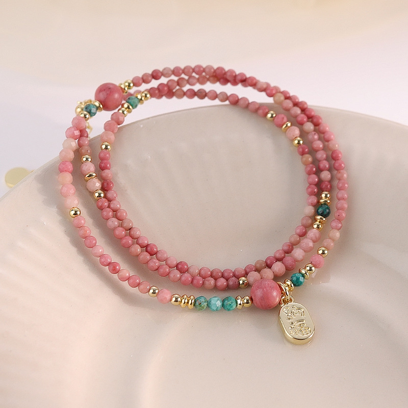 巴度新品红纹石招财纳福圆珠项链女百搭高级感