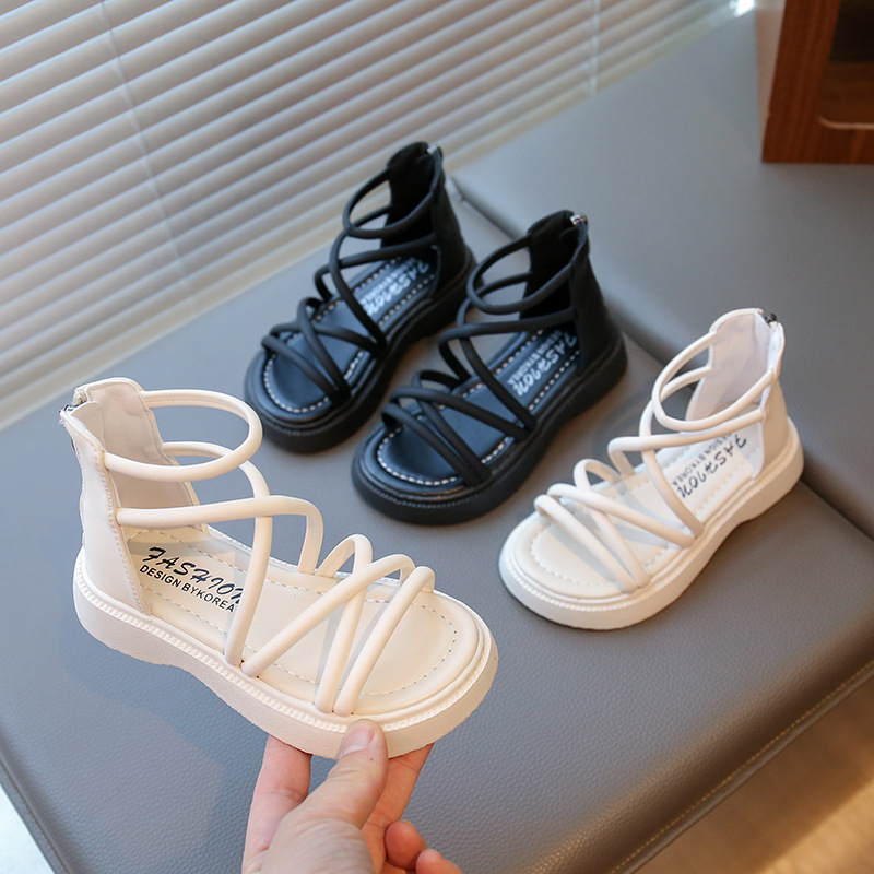 女童黑色罗马凉鞋2025年夏季新款小女孩百搭洋气公主鞋韩版沙滩鞋