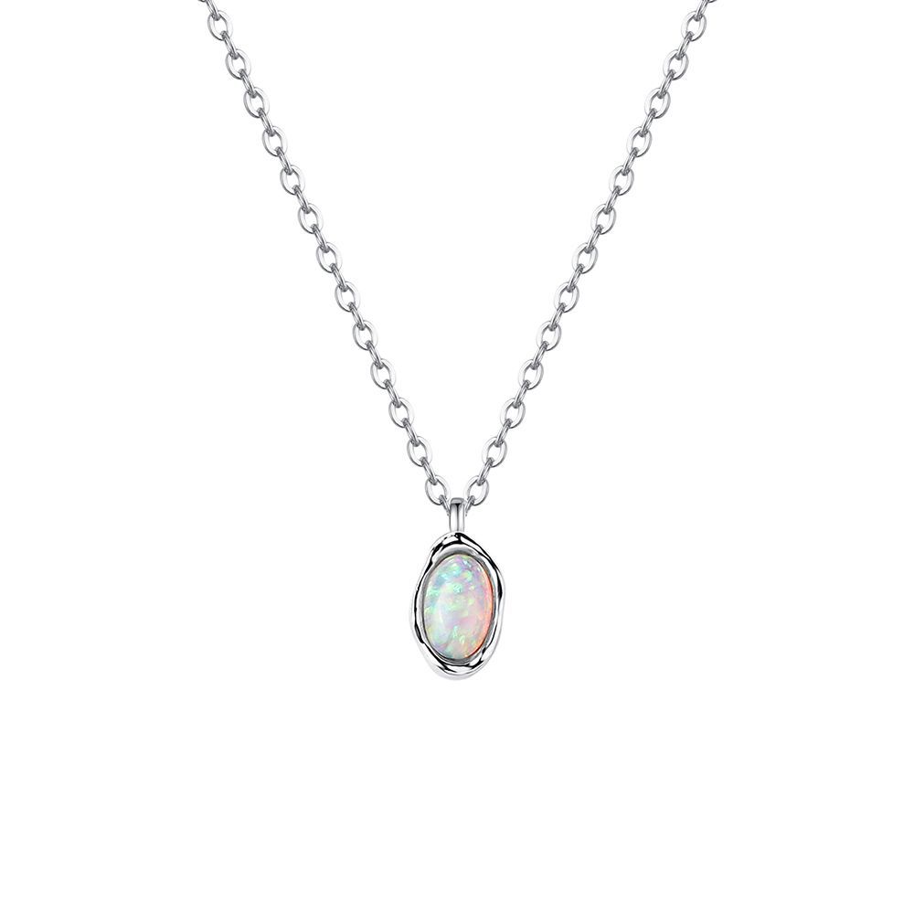S925纯银合成欧泊石设计简约百搭项链女气质高级感锁骨链礼物