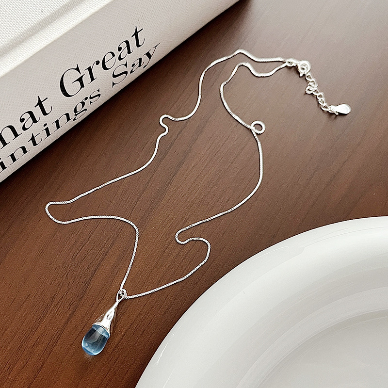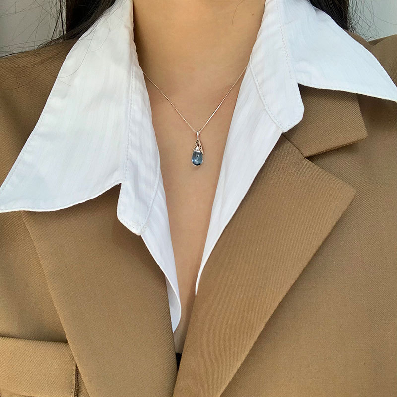 925纯银水滴猫眼石项链女简约温婉气质百搭设计高级感锁骨链N7711
