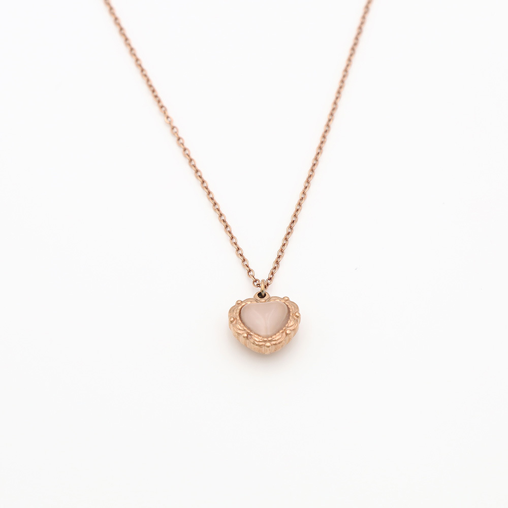 跨境首饰法式复古花边猫眼石爱心项链女百搭不锈钢立体桃心锁骨链