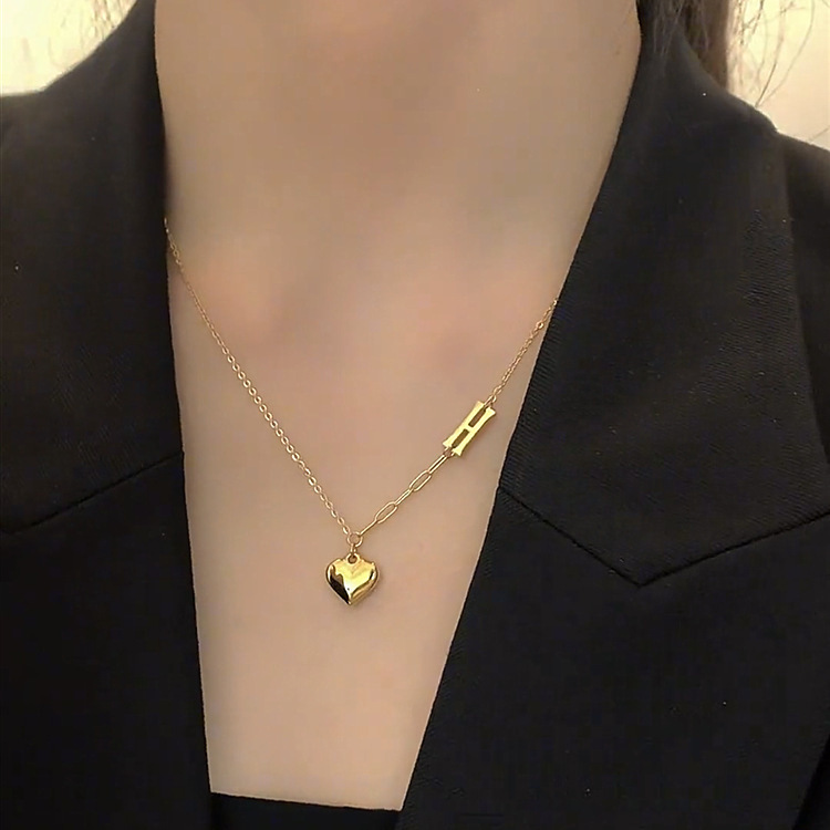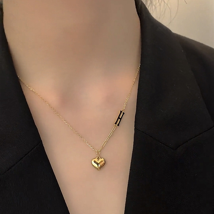 新款爱心型不对称锁骨链 轻奢小众永恒浪漫项链 高级感百搭配饰品