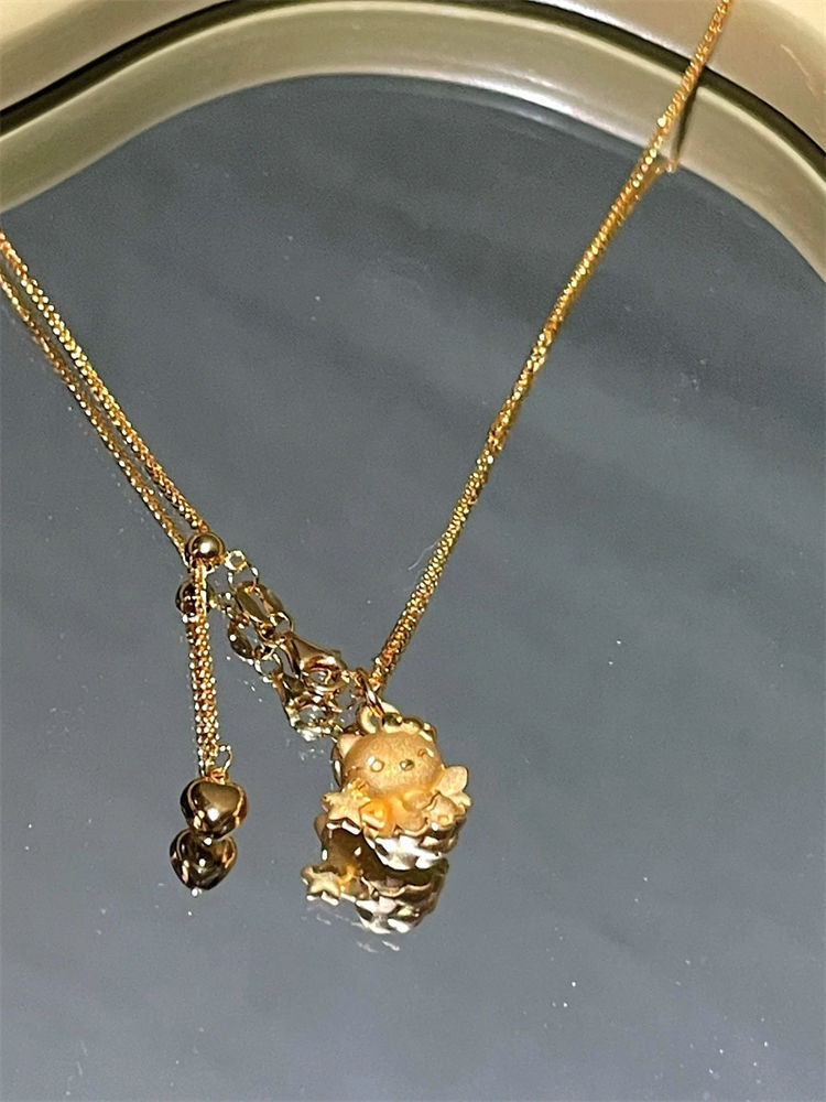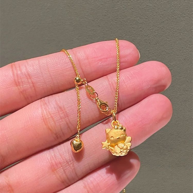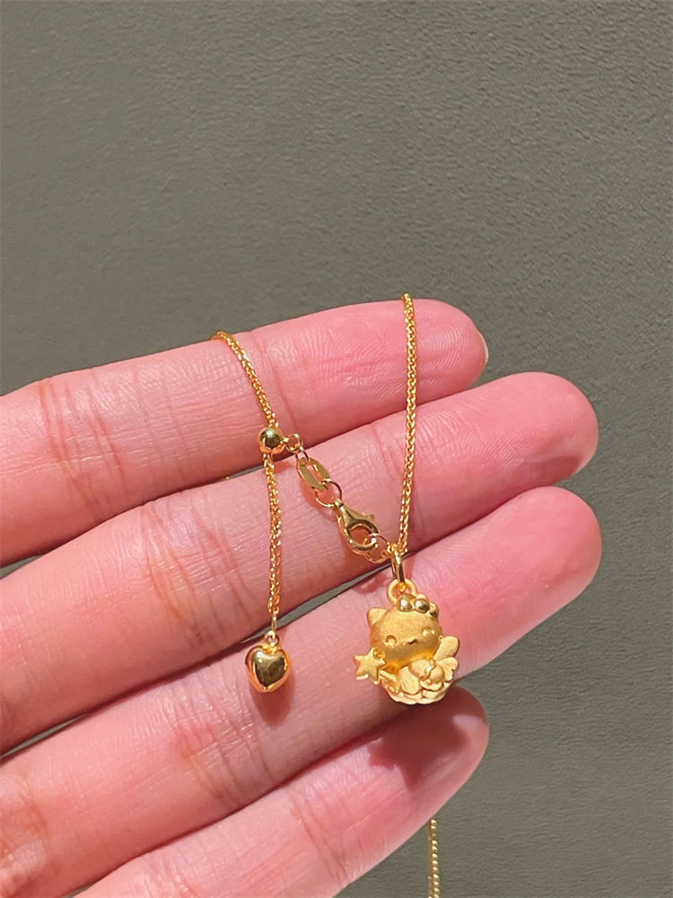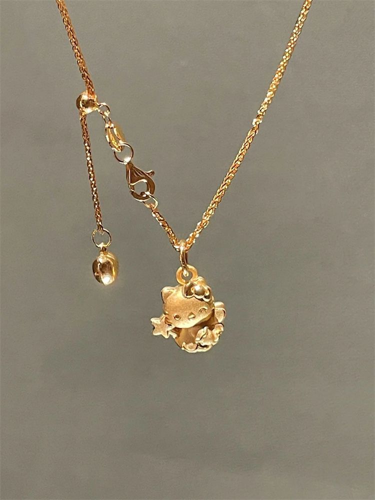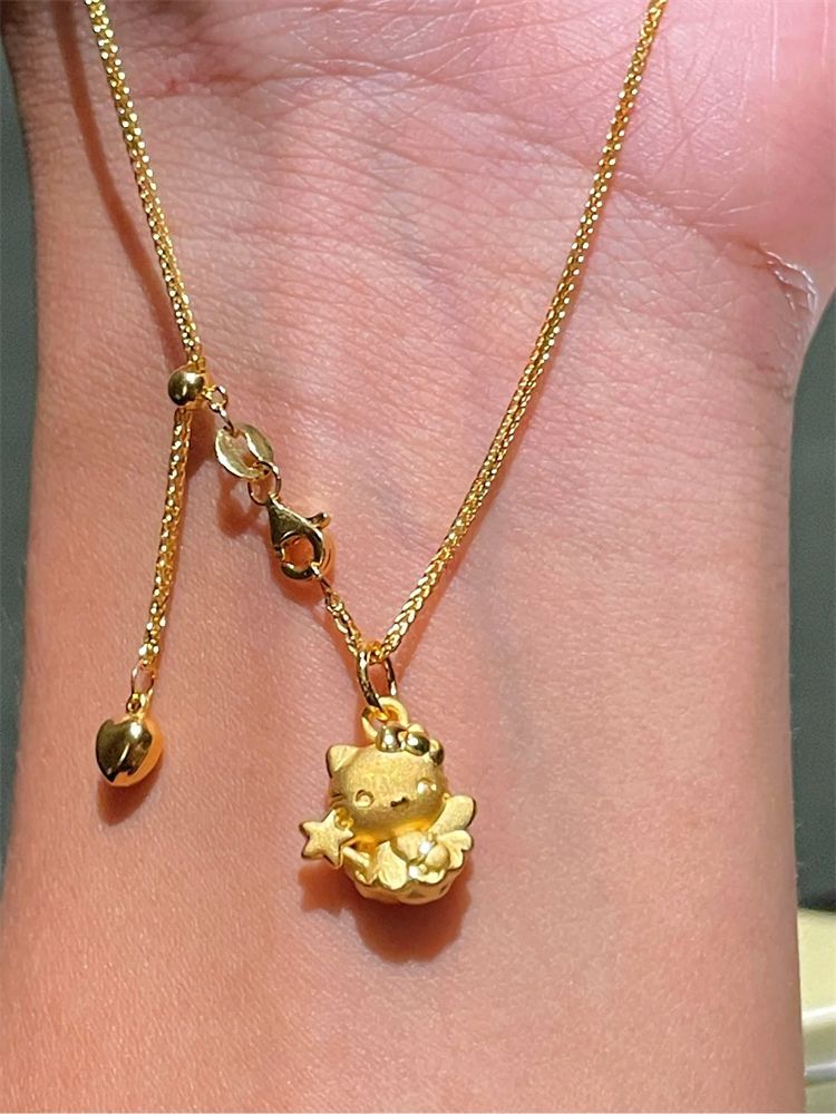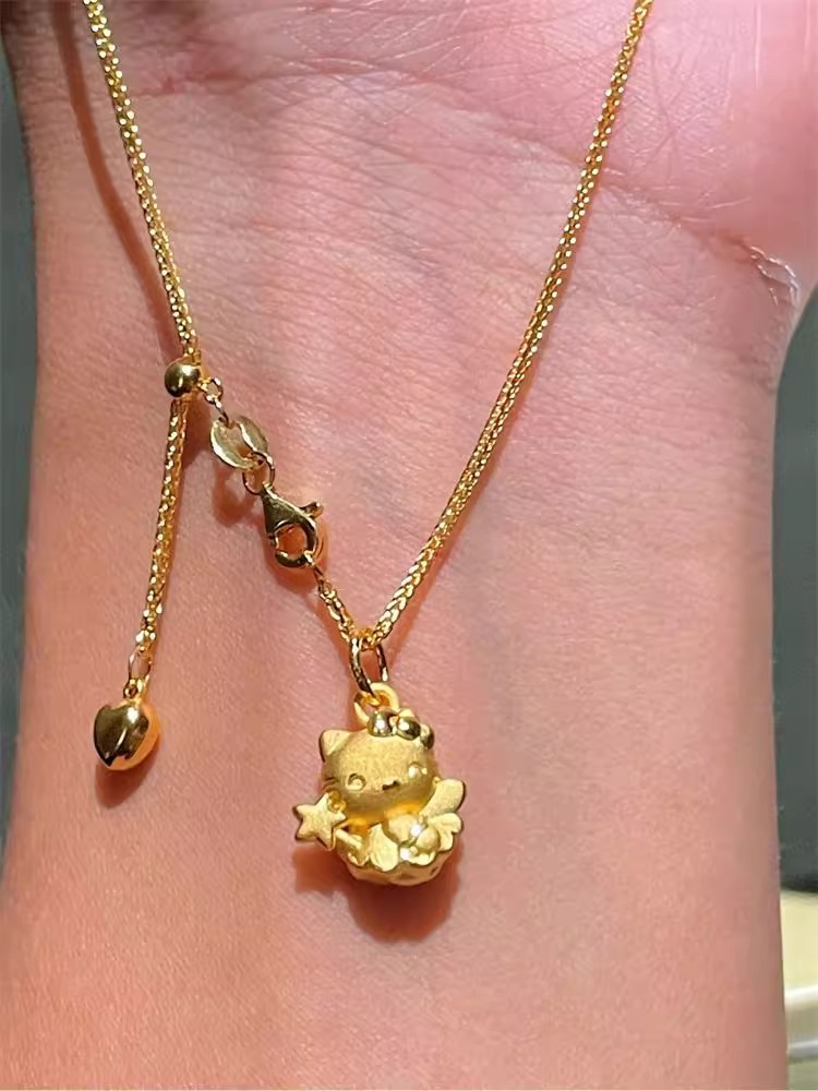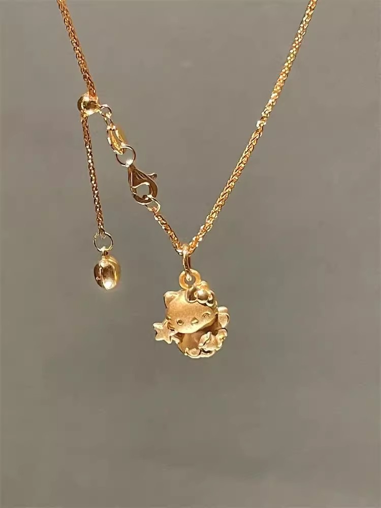 新款黄金色Hello星星猫吊坠项链女款3D立体甜美百搭高级感Kitty锁