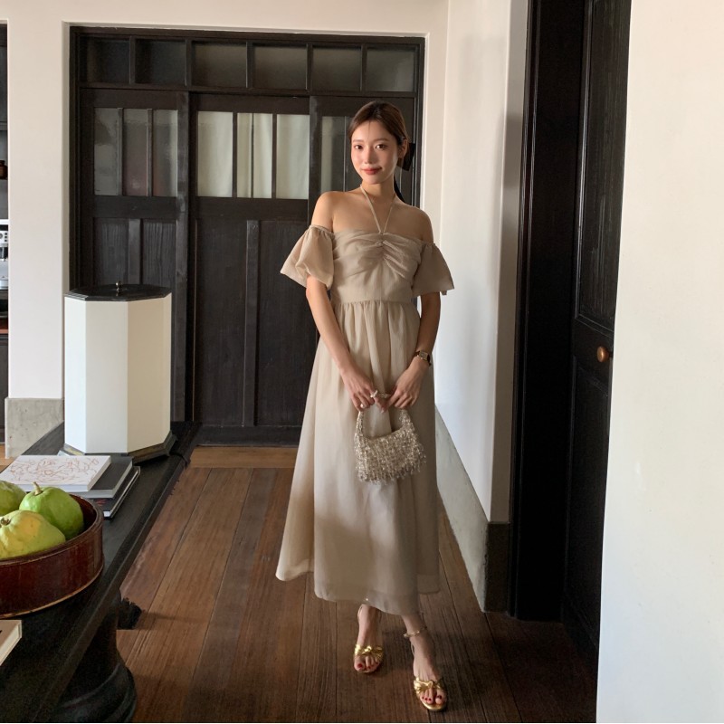诠释美 NEW OPEN夏法式温柔挂脖连衣裙女名媛气质中长裙82686