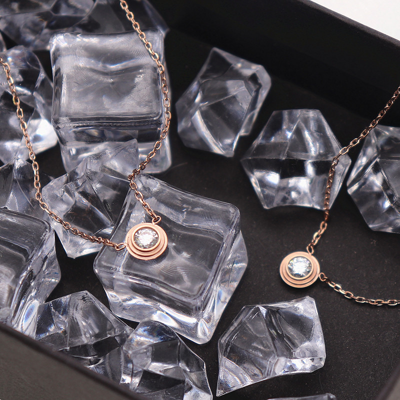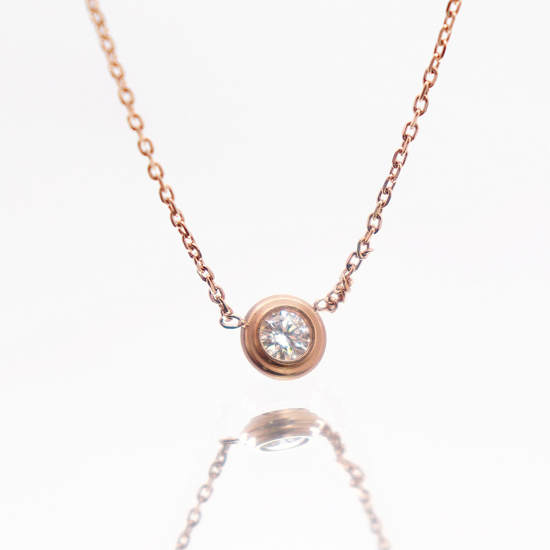 卡家莫桑石项链女百搭高级感单钻小飞碟泡泡锁骨链钛钢18k不掉色