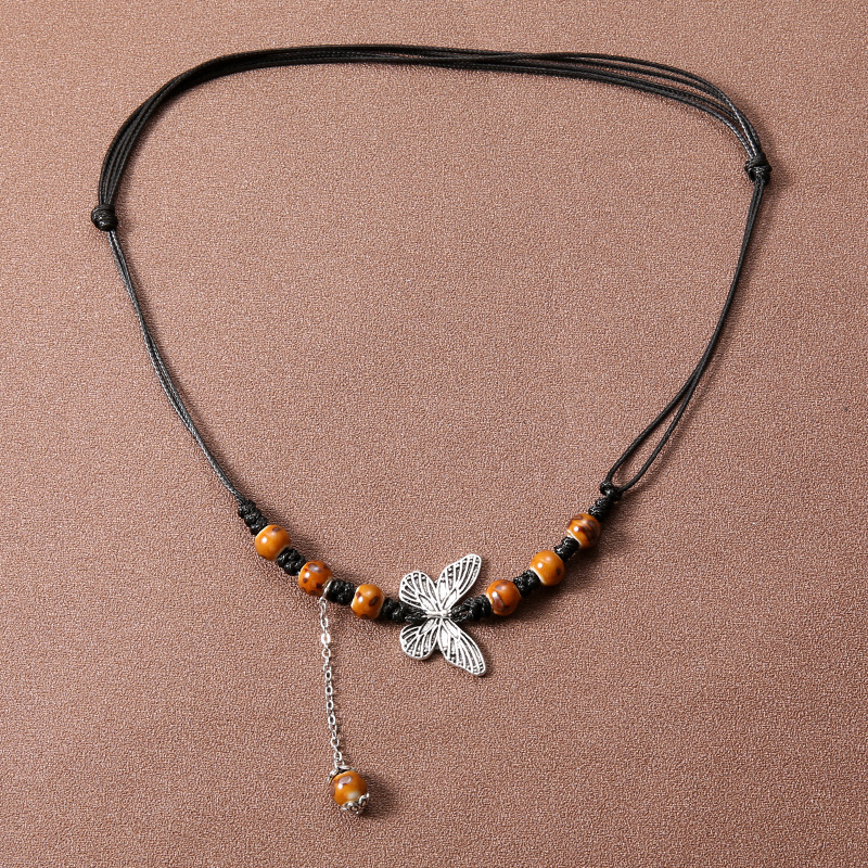 复古串珠蝴蝶项链高级设计感小众古风百搭女士秋冬民族风毛衣链