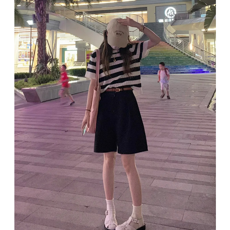 黑色西装短裤女夏薄款新款高腰宽松休闲小个子a字冰丝五分裤
