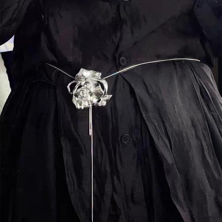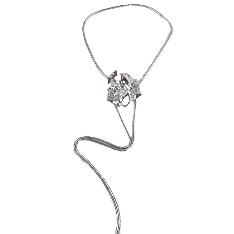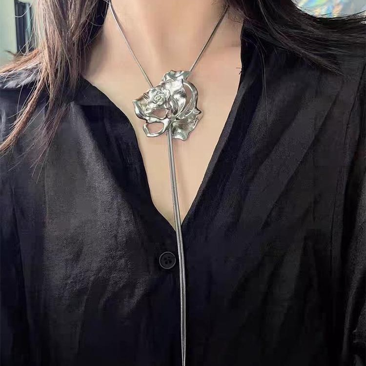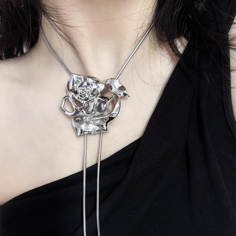 高级感玫瑰花项链女小众设计Y2K甜酷锁骨链辣妹百搭抽拉式腰链女