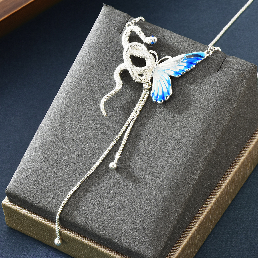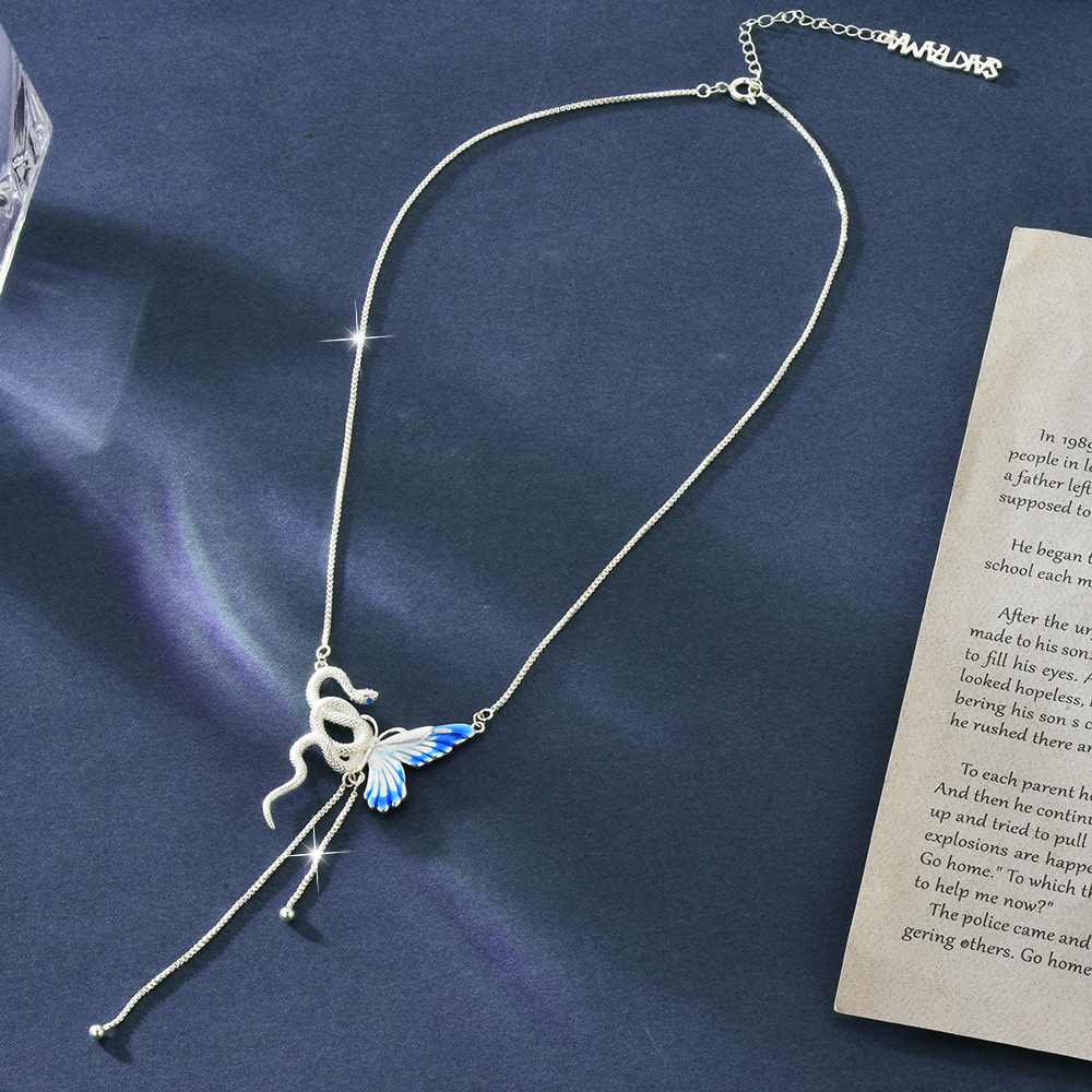 时尚个性蛇蝴蝶流苏锁骨链气质百搭蝴蝶蛇项链潮女高级感