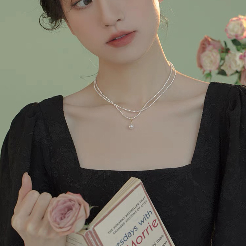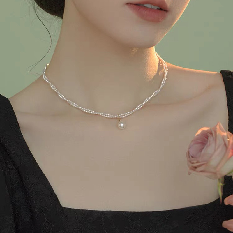 高级感贝珠项链时尚小众设计3mm光亮珍珠锁骨链气质百搭编织颈链