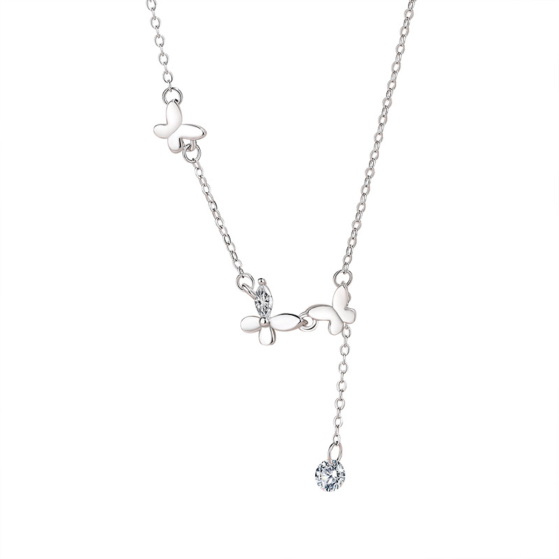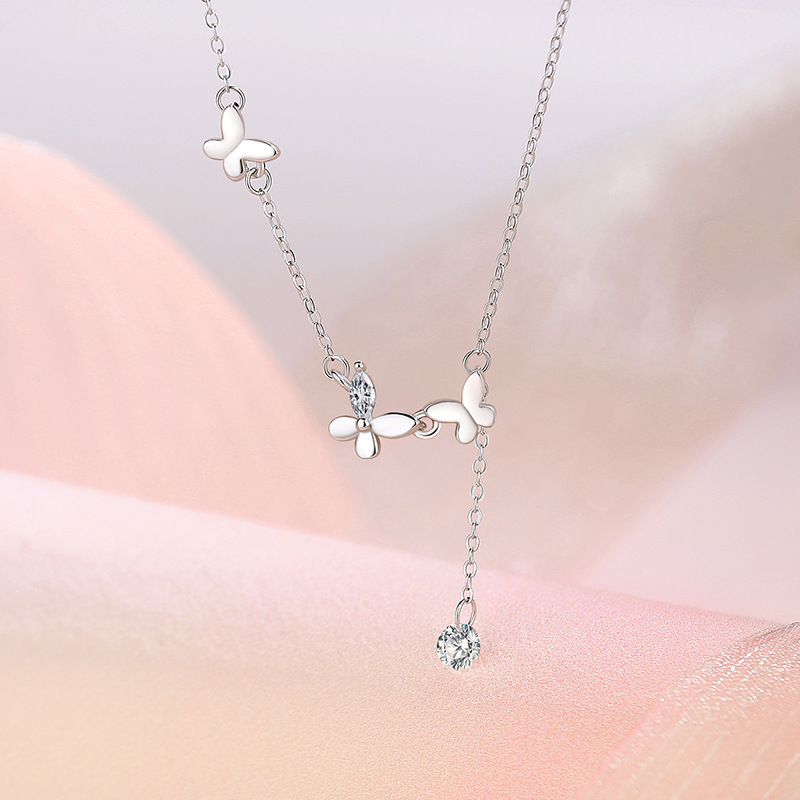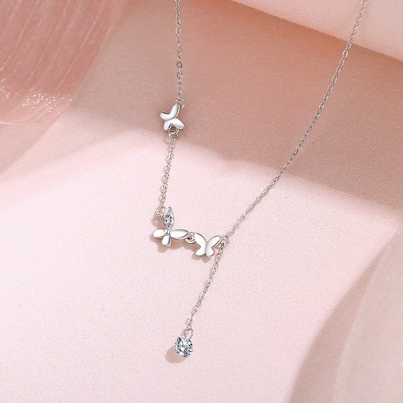 925纯银蝴蝶项链女韩版森系ins高级感流苏锁骨链百搭简约颈链