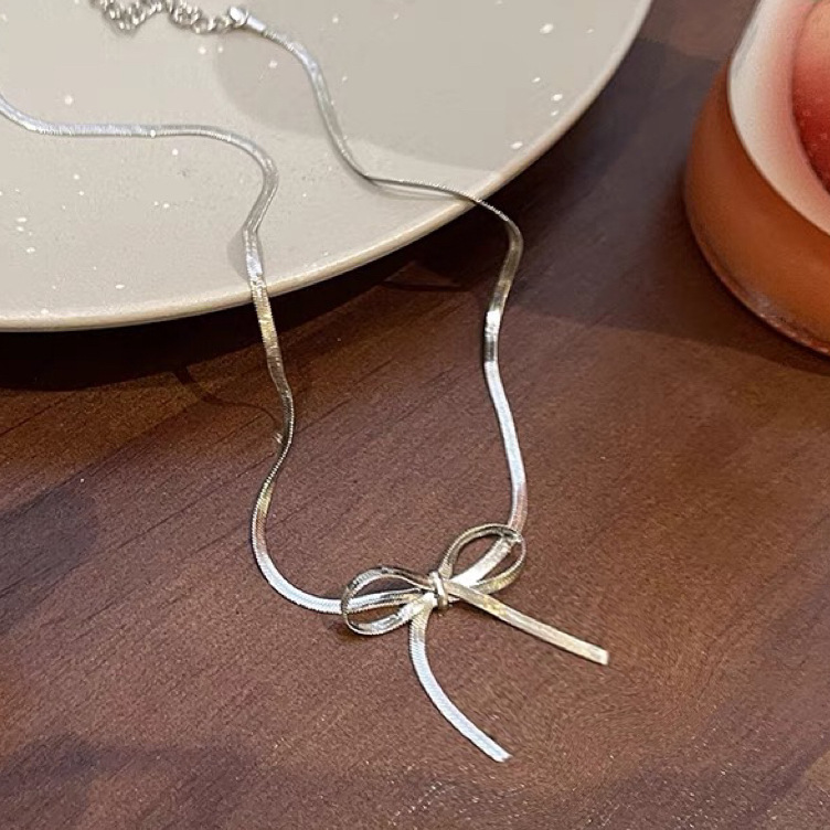 日韩简约甜美蝴蝶结钛钢不掉色蛇骨链项链饰品女百搭高级感锁骨链