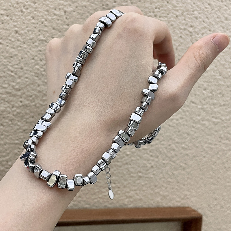 钛钢不规则碎银子项链嘻哈冷淡风小众设计感轻奢情侣女款锁骨链男