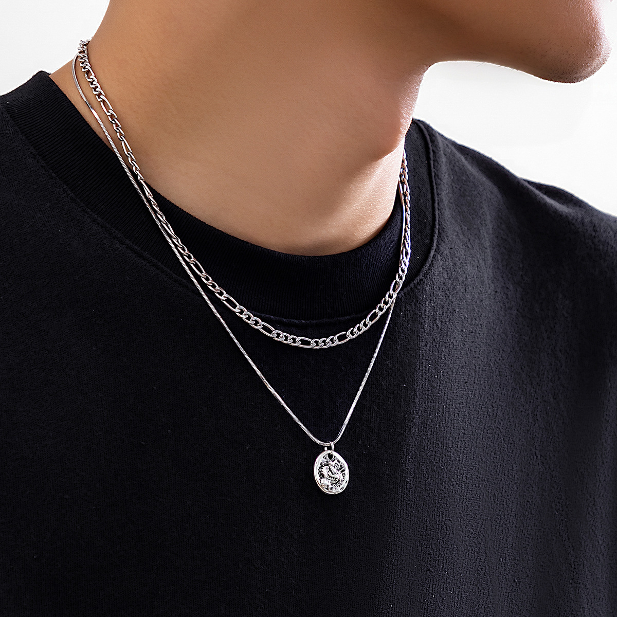 欧美嘻哈金属毛衣链小众高级感男潮百搭浮雕马项链跨境男士锁骨链