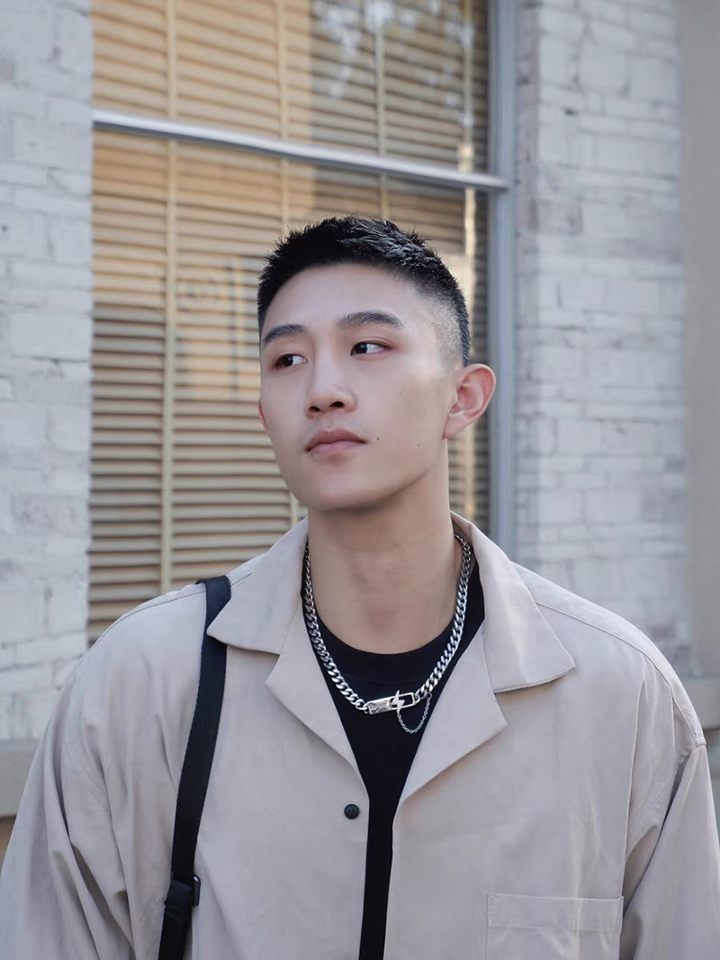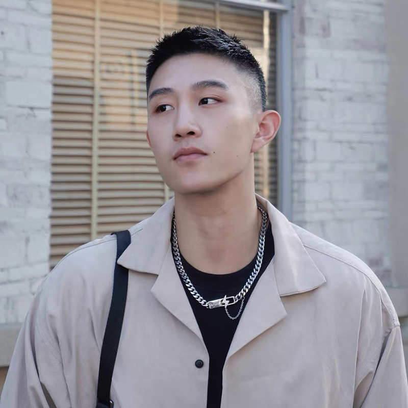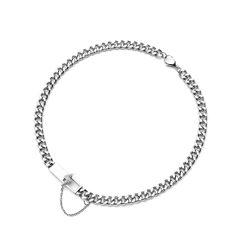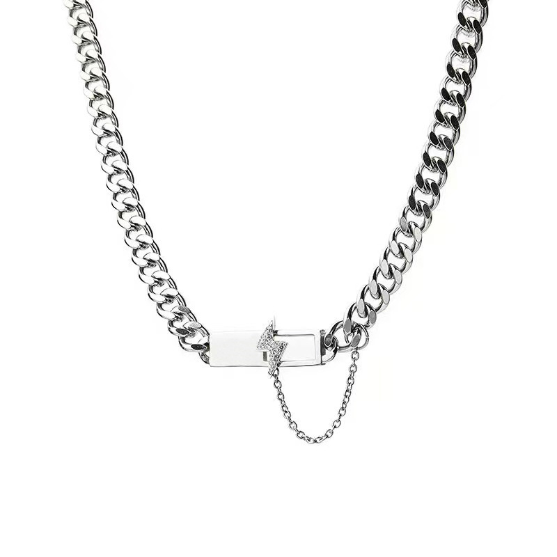 闪电方牌项链美式男潮男士男生hiphop嘻哈痞帅钛钢古巴链子锁骨链