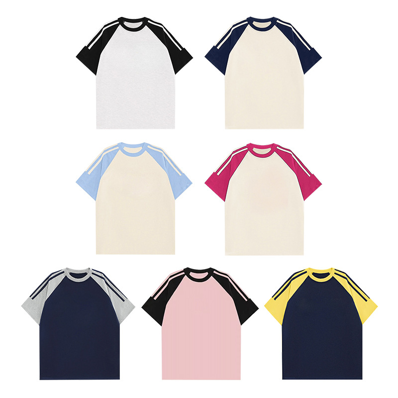 A36#(21支超爽纯棉220克索罗娜螺纹领)插肩撞色条纹三条杆短袖T