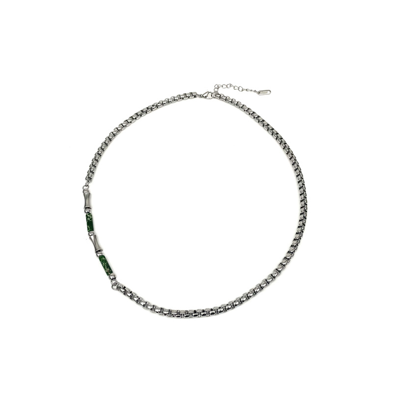 加格 国潮百搭男生项链新款绿色竹节设计感学生配饰ins复古冷淡风