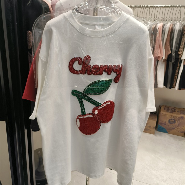 秋季ins风 樱桃乐园/早春新款休闲宽松百搭圆领遮肉短袖T恤女