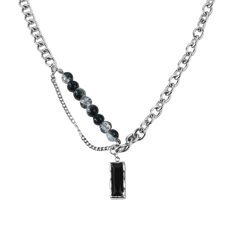 拼接黑宝石项链男潮高级感原创设计小众吊坠男生高街潮牌毛衣链女