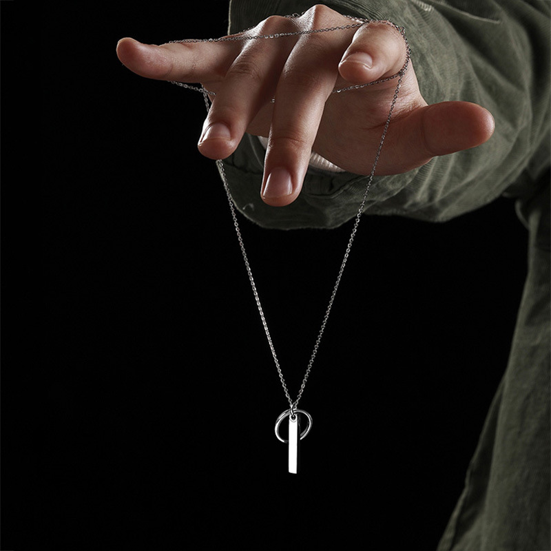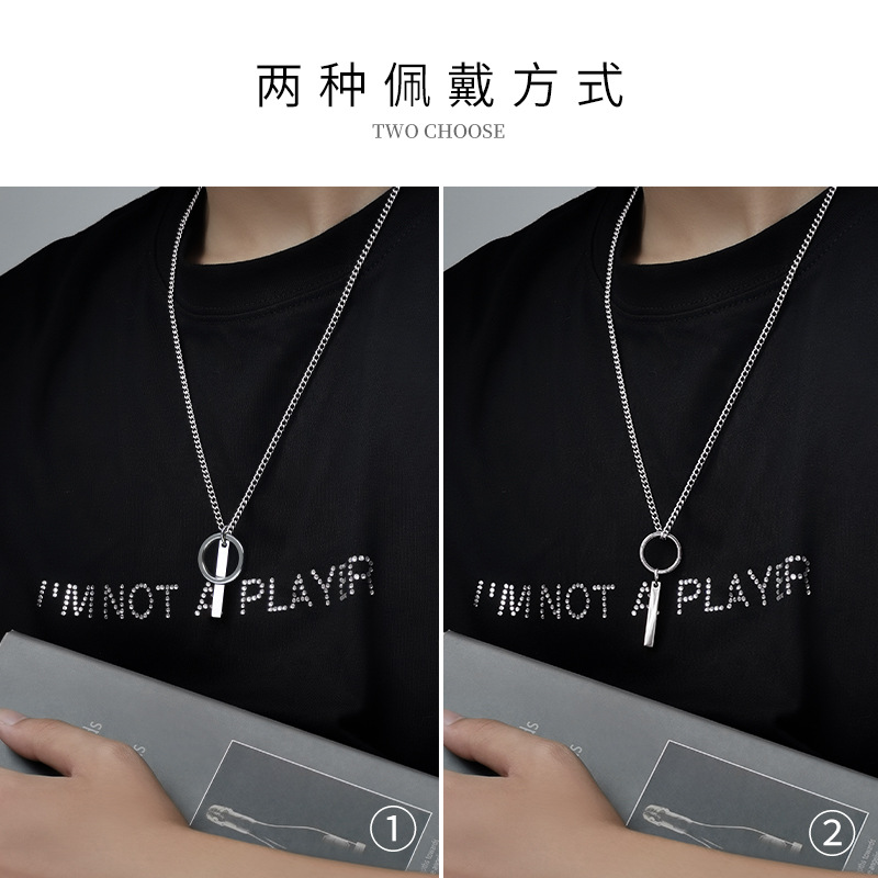 s925纯银IO指环项链男ins嘻哈潮牌长棍吊坠小众设计高级感毛衣链
