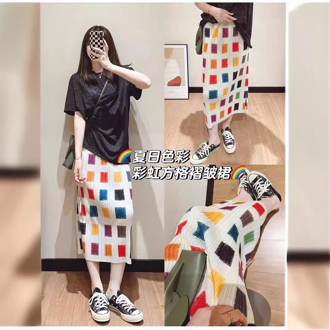 沙滩百褶小众设计感褶皱裙夏旅游高腰复古显瘦包臀开叉半身裙