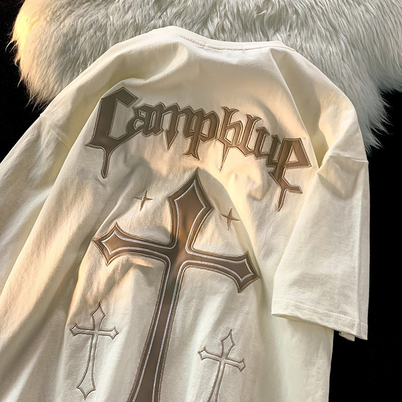 纯棉美式高街十字架印花短袖t恤女学生潮牌百搭宽松显瘦打底衫