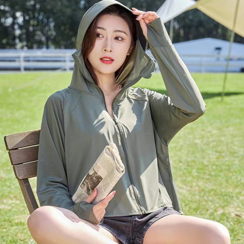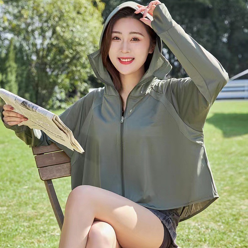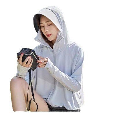 冰丝防晒衣女upf50+黑胶帽檐斗篷款防紫外线透气皮肤防晒服