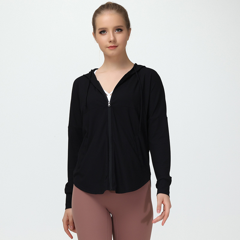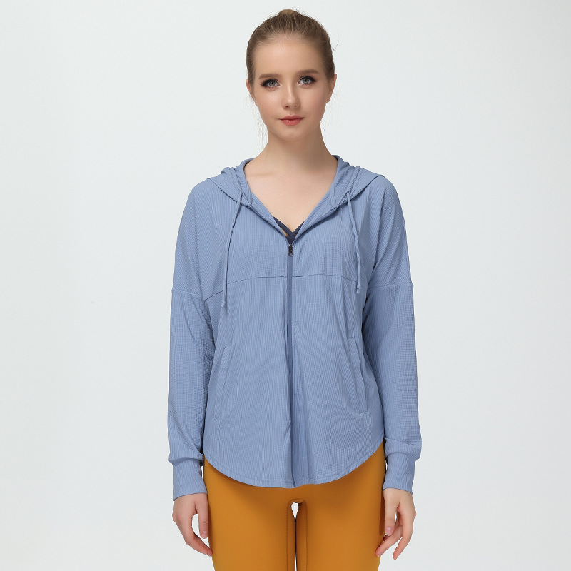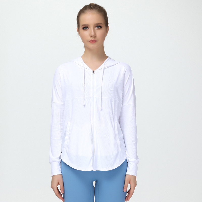 新款春季瑜伽外套女宽松休闲薄外套连帽透气瑜伽服大码防风皮肤衣