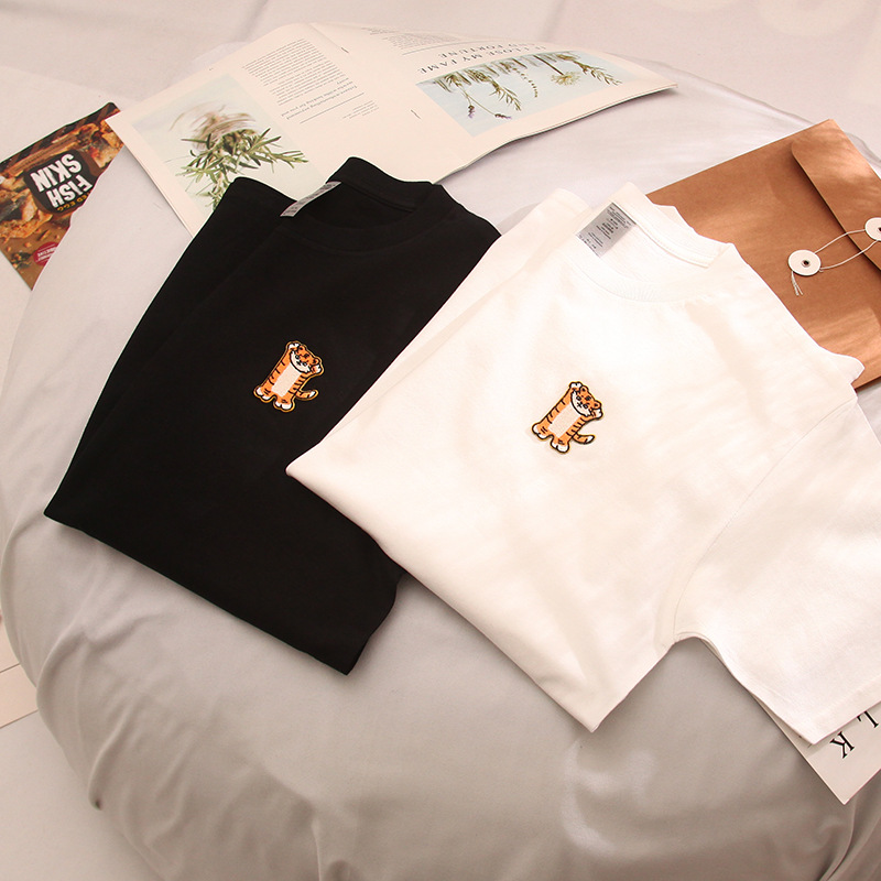 夏季新款卡通贴布圆领休闲情侣短袖T恤男女宽松半袖潮CXDT857
