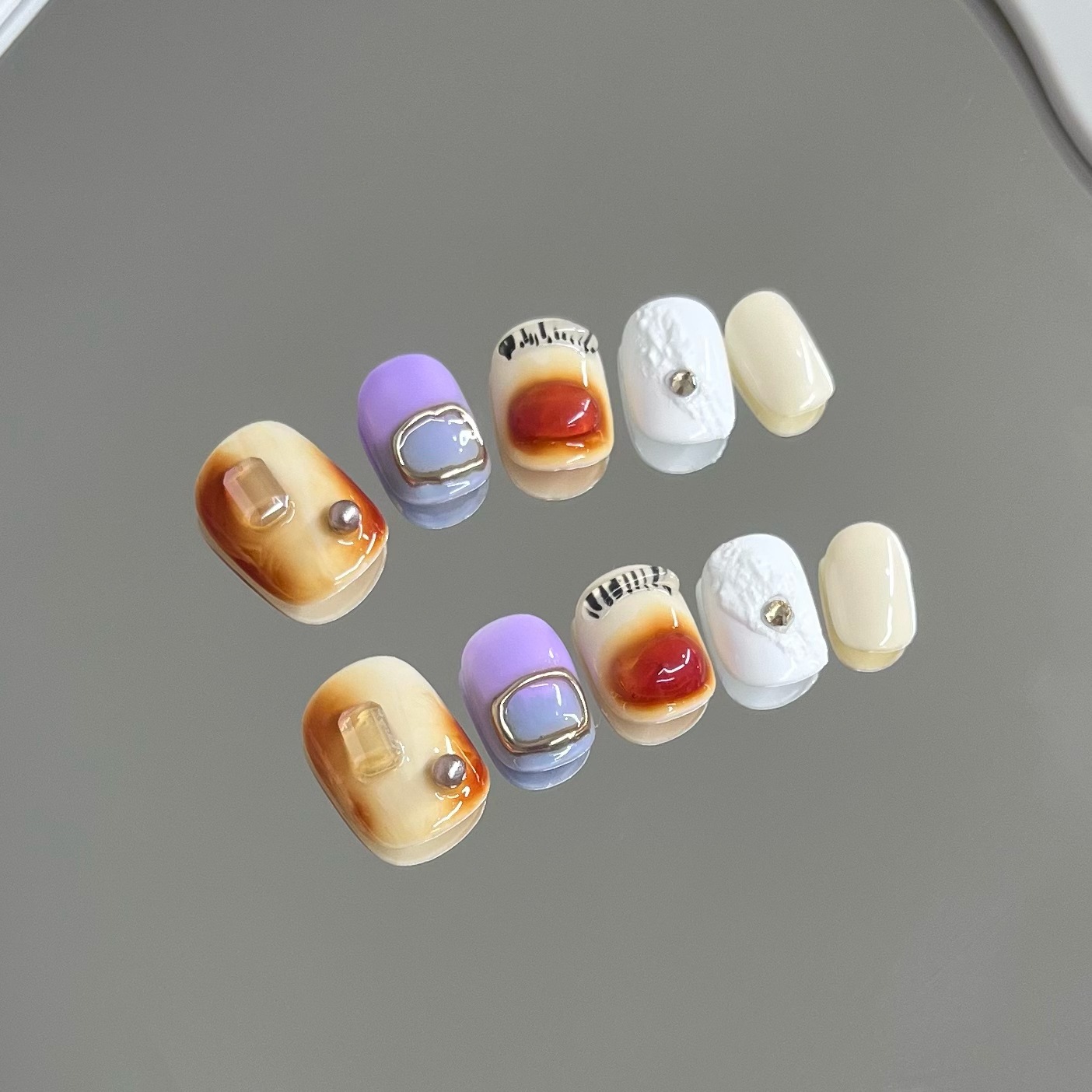 纯手工穿戴甲焦糖芋泥晕染可爱风初秋美甲可拆卸重复使用光疗甲片