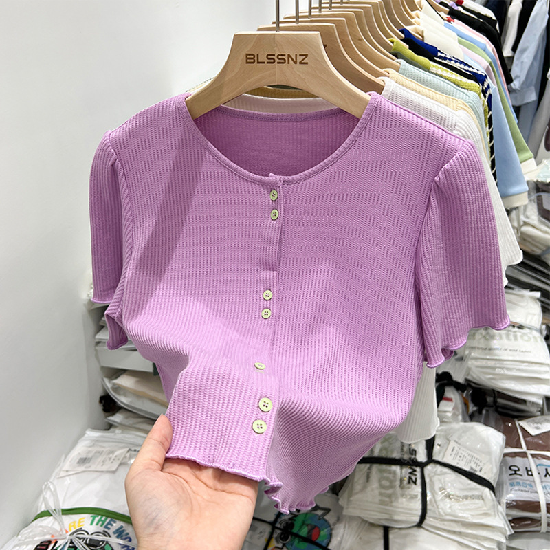 白色短袖t恤女开衫夏季新款纯欲独特别致短款上衣女设计感ins
